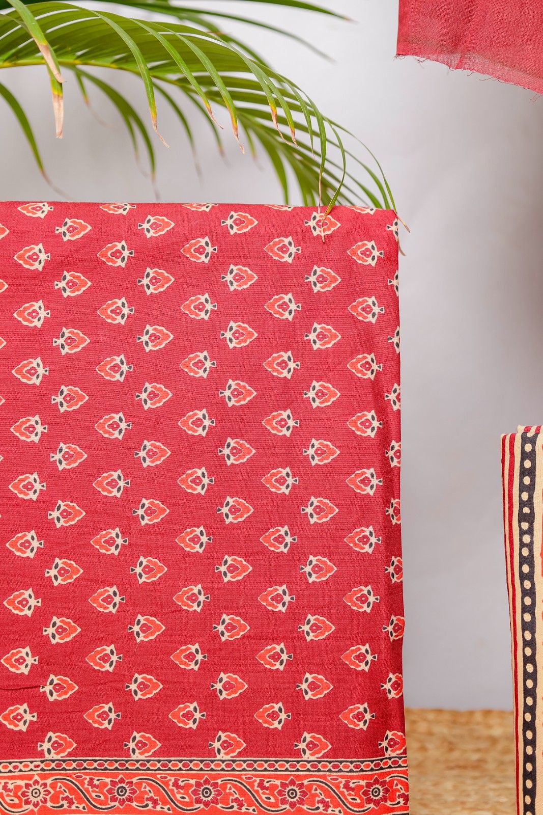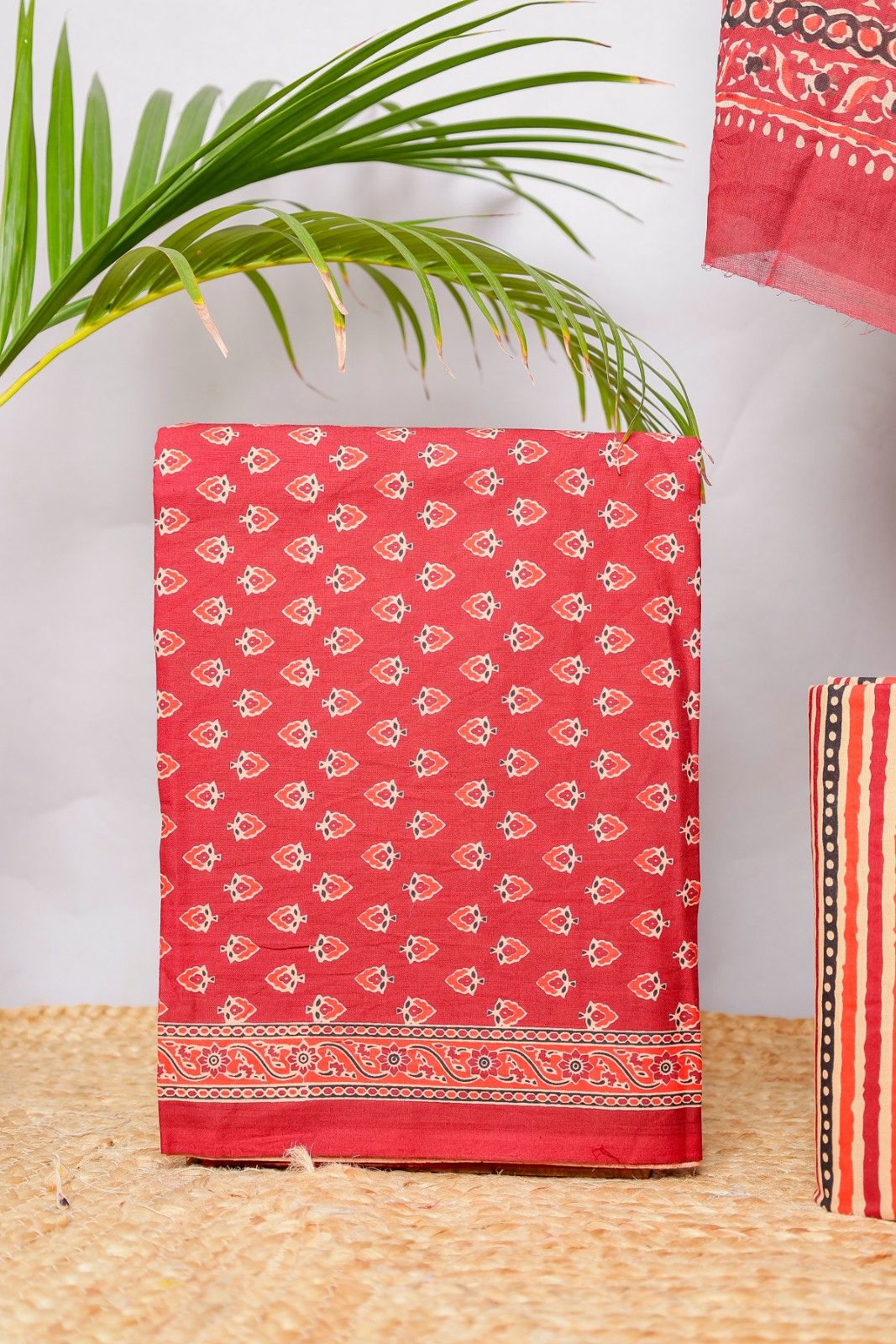 Pure Cotton Ajrakh Print Cotton Suits Set Red