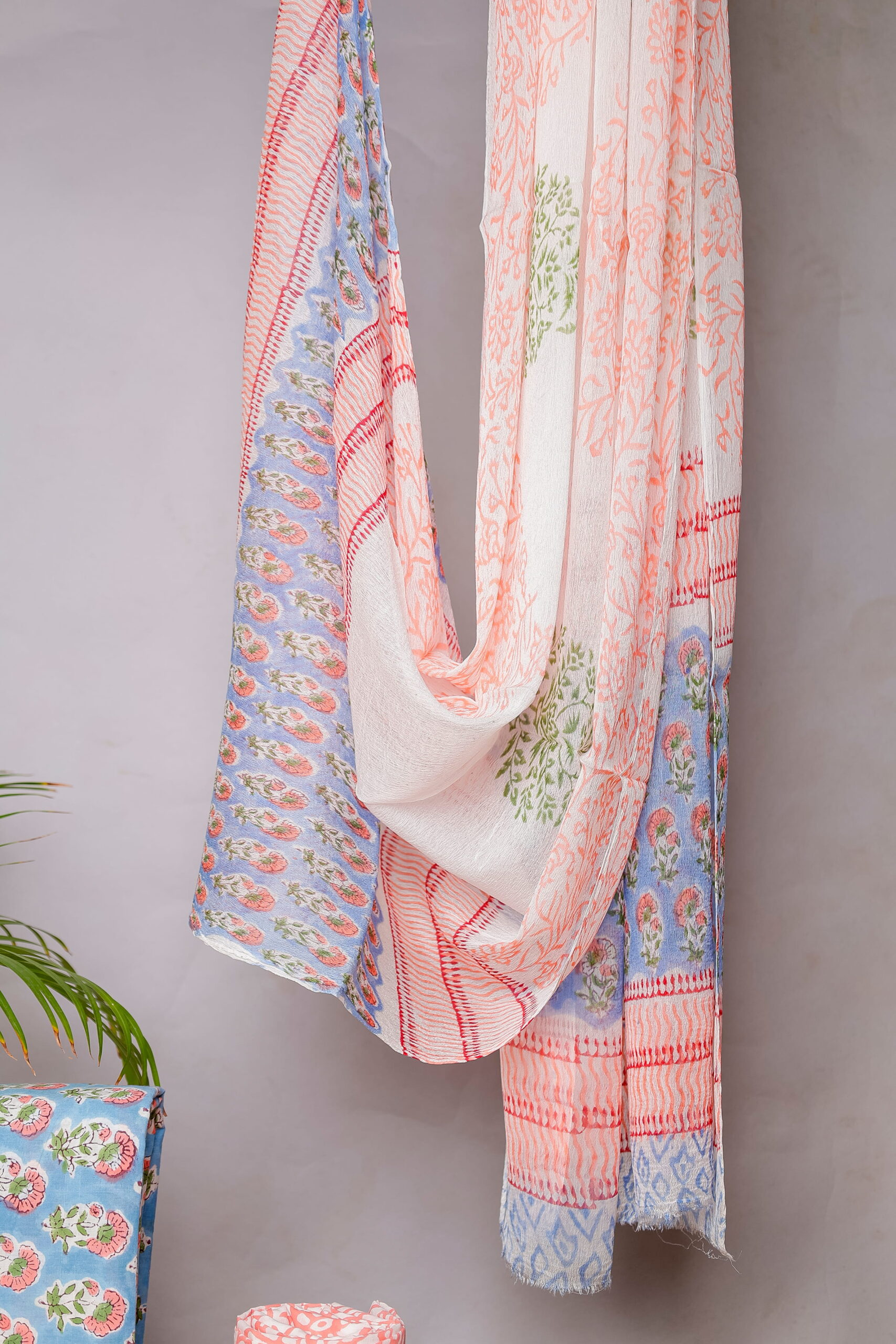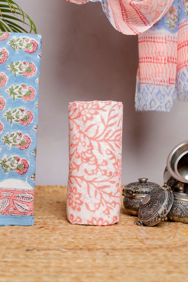 Elevate your everyday ethnic style with this elegant sky blue and peach floral block print unstitched cotton suit set from Ekagrata Fashion. Designed with soft pastel tones and traditional handcrafted patterns, this 3-piece ensemble reflects effortless charm and timeless appeal.