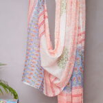 Be the first to review “Sky Blue & Peach Floral Block Print Unstitched Cotton Suit Set (3-Piece Set)”
